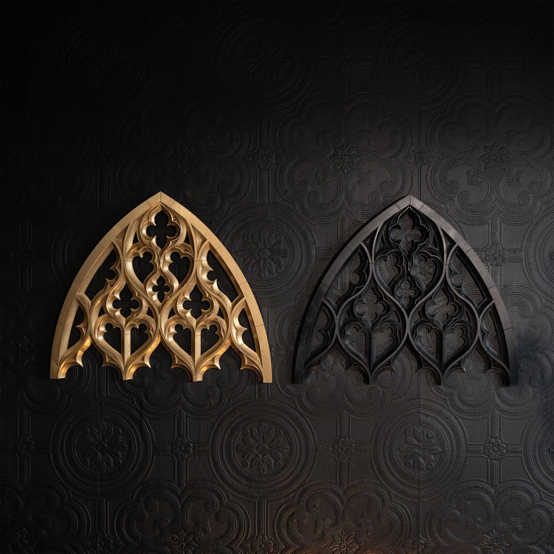 Our love and appreciation for the ornate forms and shapes of gothic architecture has led us to expand on our gothic window range of wall hangings!
